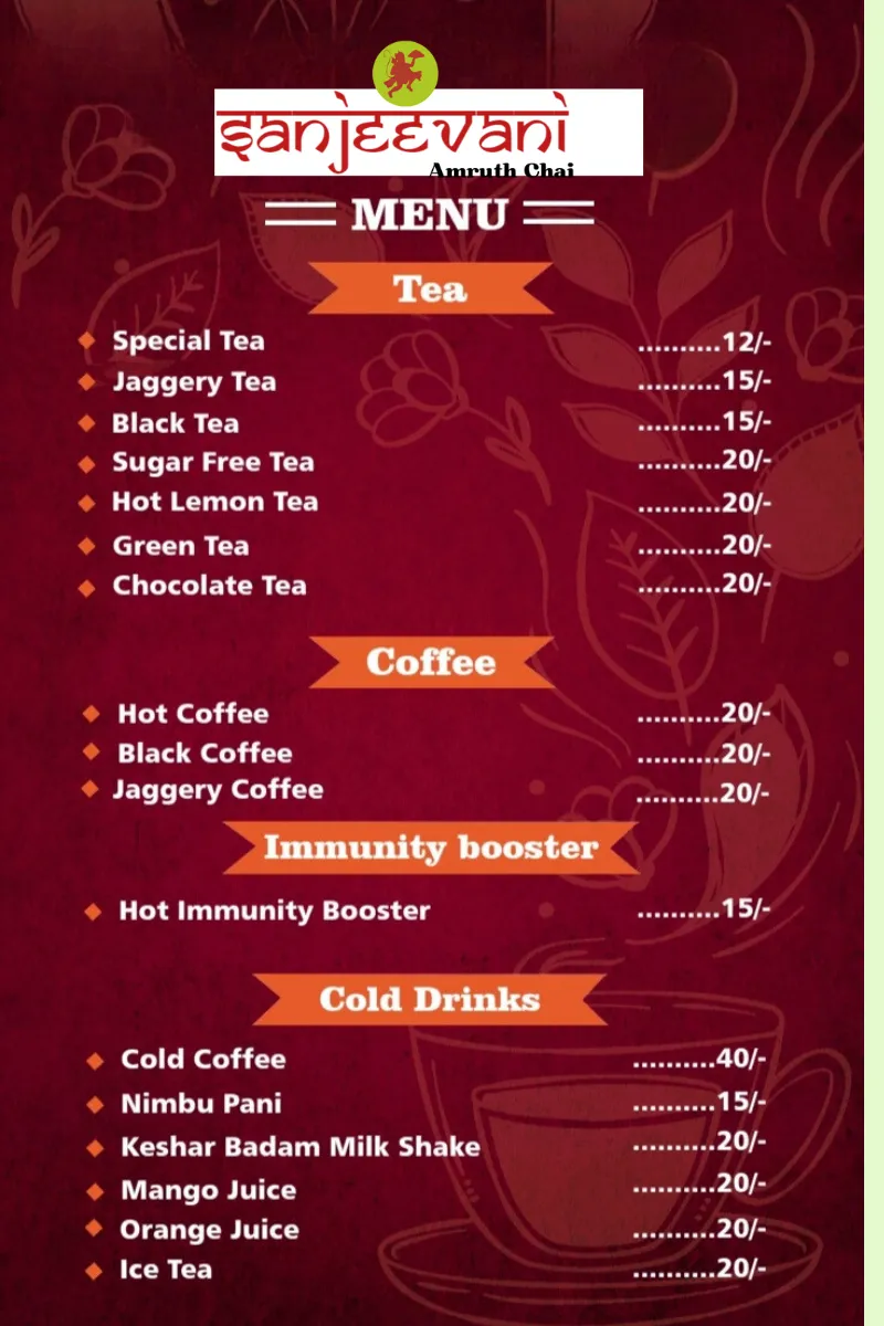 At Sanjeeveni amruth chai , we strive to provide you with an experience that transcends the ordinary, offering a charging point for your senses, while ensuring every sip is filled with unparalleled goodness and taste.